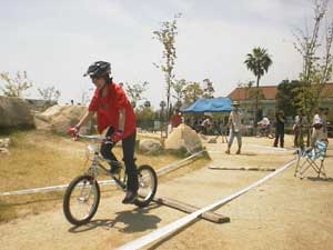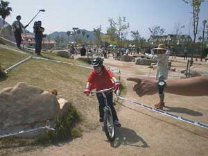 | 戻る | なななんと、広島テレビの取材が行なわれました。 番組は5/27(日)の午前11:25〜11:30に放送の『ズームアップ呉』 5分番組だけど、どんな感じになるのか楽しみだねぇ・・・ ちなみに、リポーターの中井さんはSKクラスに特別エントリー! ![]() レポーターの中井さんと主催者の新山さん。 おやぁ、緊張してる? ![]() 開会式でカメラは新山さんをドアップに!! ![]() 当たり前だけど『TV番組じゃのぉ!』って感じやねぇ・・・ ![]() 『中井レポーター、セクションを疾走する』の巻 ![]() 『中井レポーター、ミニ段差を軽く越える』の巻 セクションアウト直後にはコメントを発してました。 トライアルは初心者でも、レポートはやはりプロです! |
