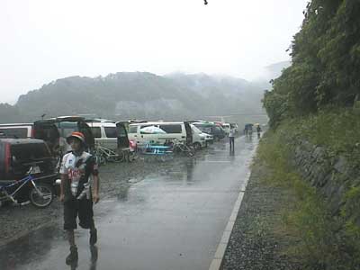 雨が残る朝の駐車場
