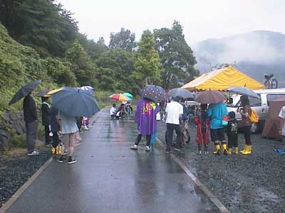 傘をさしながらのライダーズ・ミーティング