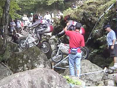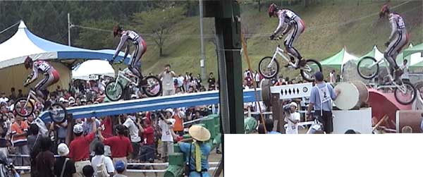 | 戻る | ![]() 3セクションで飛び降りを見せるセサール・カニャス選手 0108cesar01.wmv (558KB) 多くの選手が赤色ライン(二段階)を選択していたが・・・ ![]() 宮岡啓太選手だけが黄色ライン(一発飛び降り)を選択 0108keita01.wmv (555KB) (利き足の差によるものか?) ![]() このあたりまでは順調なKEITA ![]() ここでもまだ減点はゼロだが・・・ ![]() 時間が足りずに無念の5点 ![]() そういう厳しい状況でも確実にセクションをアウトするカニャス ![]() 飛びに関してはダニ・コマスのほうがカニャスより上か? 0108dani01.wmv (320KB) ![]() 岩盤の激下りがある7セクション ここをクリーンしたのはエリートでKEITAだけ! (見れなくて残念だぁ。。。) ![]() 最終セクションの傘を試走する選手 ![]() 最終セクションの最後の難関、刀 (高くて狭いのじゃ) ![]() 刀をクリーンするダニ・コマス(連続写真) |