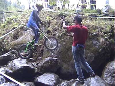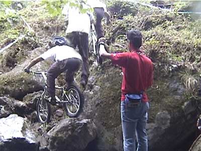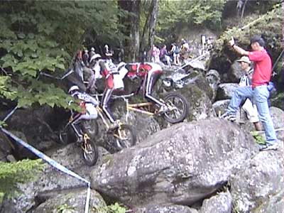 | 戻る | ![]() 3セクション最後のステアに飛び上がる水谷好宏選手(18) (今大会は見事にクラス優勝し、来年のエリート昇格を決定) ![]() 地元板取村の長屋佳政選手(20) パワーライディングはピカイチですね(ステア連続写真) ![]() カデットクラスでブッチギリ優勝の寺井一希選手(16) 同じく3セクションの最初の飛び降り ![]() 来年エリート昇格を決めた寺井一希選手 下り岩盤〜ステアを絶妙のバイクコントロールでクリア(連続写真) |